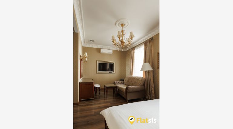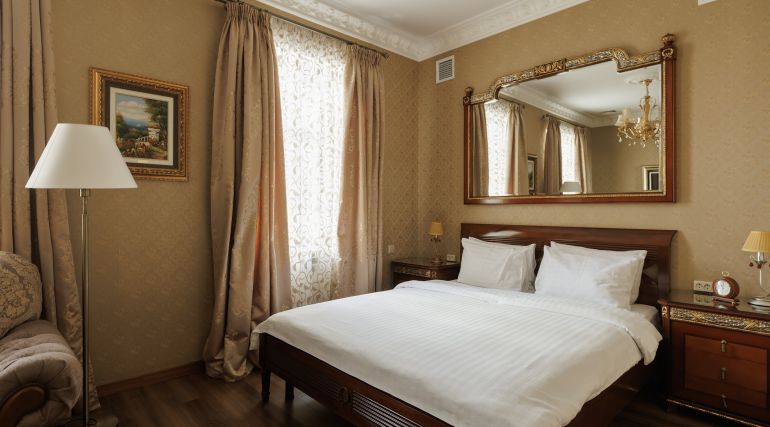 The one-room Nordian Deluxe room has a comfortable double bed with orthopedic mattresses. The room features a mini-fridge, desk, wardrobe and air conditioning. The highlight of this room is the presence of a guest area with an additional single bed - a sofa-sofa. Having a Smart TV with access to Megogo and Netflix will allow guests to have a pleasant evening watching their favorite films and TV series. The bathroom is equipped with a shower with high-quality cosmetics for hair and body care, towels, a hairdryer, as well as the necessary plumbing fixtures and a dispenser filled with soap for washing hands.